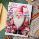 Spread holiday cheer with this whimsical card featuring a pink gnome surrounded by festive treats and decorated Christmas trees. The "Merry Christmas" message adds a playful touch, making it perfect for sending joyful greetings to friends and family who love fun and unique holiday designs.