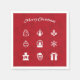 A trendy, modern and festive themed illustration. The graphic features a set of 9 christmas icons. The background is red with a faint pattern of various popular christmas symbols. On top of the red background in bold bright white are some more seasonal christmas icons including a snowflake, angel, wrapped gift, santa face, sprig of pine, a snow globe, a warm fireplace, a decorated christmas tree and an ornament. Merry Christmas is written at the top in a cheerful white font. Cute, trendy and fun.