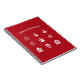 A trendy, modern and festive themed illustration. The graphic features a set of 9 christmas icons. The background is red with a faint pattern of various popular christmas symbols. On top of the red background in bold bright white are some more seasonal christmas icons including a snowflake, angel, wrapped gift, santa face, sprig of pine, a snow globe, a warm fireplace, a decorated christmas tree and an ornament. Merry Christmas is written at the top in a cheerful white font. Cute, trendy and fun.