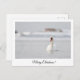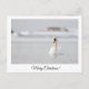 Merry Christmas! postcard featuring Mute swans swimming in the ice cold water with icy and snow covered island on the background.