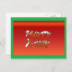 This Merry Christmas Postcard has snow on the red lettering. The background is red with a green border. Item of the Christmas Line.