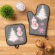 Merry Christmas Pretty in Pink | Oven Mitt & Pot Holder Set