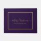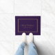 Elegant Merry Christmas Doormat with a golden script on a purple background. Personalize with your family name or text.