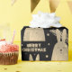 Merry Christmas Rabbit Sepia Gold Metallic Black Wrapping Paper