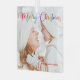 Beautiful rainbow Merry Christmas photo ornament with beautiful rainbow cursive typography. This modern holiday family photograph gift features gorgeous colorful script overlay and your name in red over the full bleed picture.