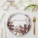 Merry Christmas Red Berries Pine Cones Snow Paper Plate