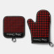 Merry Christmas Red & Black Buffalo Plaid Oven Mitt & Pot Holder Set