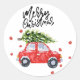 Merry Christmas red car with Christmas tree Classic Round Sticker