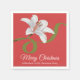 Add bold holiday elegance to your gatherings with this Merry Christmas red cocktail napkin, featuring a soft white lily (alstroemeria-style) flower outlined in red and accented with a flowing green scroll. The crisp white script “Merry Christmas” pops beautifully against the vibrant red background, creating a festive, modern look.