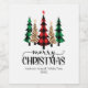 Merry Christmas Red Green Black Plaid Trees Card Wine Label