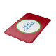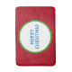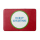 Festive Christmas holiday colours with red background, green geometric circle outline. Merry Christmas is written in blue text inside white circle. Original designs by TamiraZDesigns.