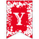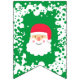 This festive "merry christmas" holiday bunting banner features red, green, and white colours, patterned dots, decorative text, and a smiling santa claus .