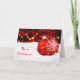 Red Christmas greeting card featuring red ball in the snow and blurred lights in the background with customizable text message on the front side and the inside. Click to customize further for more options (font size and colour, adding / changing photo).