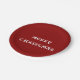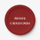 Dark Red Dessert Size Paper Plates with "Merry Christmas" in a white, snowy font.