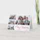 Modern holiday folded card featuring a 4 of your favourite photos, "Merry Christmas" in a chic red script and your name and the year in simple typography. Add your personalized greeting to family and friends on the inside.