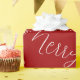 Modern and elegant Merry Christmas red wrapping paper. White font decorative handwritten calligraphy.