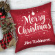 Merry Christmas Red White Trendy Custom Name Throw Pillow