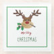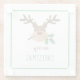 Merry Christmas Reindeer Mistletoe Green Glass Coaster