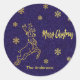 Merry Christmas reindeer snow blue glitter gold Classic Round Sticker