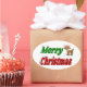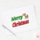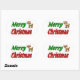 Stickers with Merry Christmas in 3D green and red text and Christmas reindeer. Stickers are available in several shapes.
