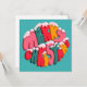 Vibrant colored letters, trees, holly and cancy canes in a cheerful message suitable for a non-religious holiday greeting. I especially liked it on the black background which made the design pop.