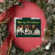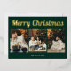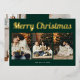 Merry Christmas Retro Script Photo Green Foil Holiday Card