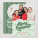 This design features a merry Christmas holiday photo green, with whimsical festive fun cute family, two double 2 photo template, a retro groovy vintage script style, a family picture vertical picture card, a simple trendy stylish typography, with green lime sage swirl swirly, a holiday Christmas photo cards, a creative unique cool festive card, a simple green and red holiday