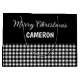 Wrap your holiday presents in style with this rustic buffalo plaid Christmas gift bag from Plaid Perfection. Featuring a bold black and white plaid base, a sleek black background, and festive editable “Merry Christmas”, this bag also includes space to personalize with any name/text for an extra-special touch. Perfect for wrapping Christmas gifts for family, friends, or coworkers, this reusable bag brings cozy holiday charm to every celebration. Edit text from the product page or to change font style or colour, use the design tool.