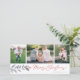 Spread cheer with this elegant design featuring a 3 photo collage, winter florals and says "Merry Christmas" in a modern brush script.