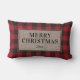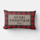 Merry Christmas Rustic Red Buffalo Plaid Burlap Lumbar Pillow