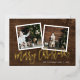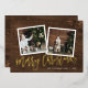 Affordable custom printed Christmas photo cards with simple templates for customization. This rustic chic design features a 2 photo template with real gold foil script text on a wood-look background. Personalize it with your photos, family name, the year or other custom text. Reverse side has space for additional photos and text. Use the design tools to change the text fonts and colours, add more photos and create a unique one of a kind Christmas photo card design.