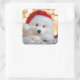 Merry Christmas Samoyed Puppy Dog with Santa Hat Square Sticker