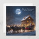 A personalized Christmas Card featuring Santa Clause riding in a sleigh with his Reindeer.