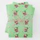 Merry Christmas Santa Animals Tree Bows Green Wrapping Paper Sheet