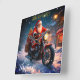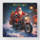 Merry Christmas Santa Clause On Motorcycle Square Wall Clock