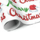 Wrapping paper with Merry Christmas in 3D green and red text and a Santa Claus hat. Available in several styles and sizes.