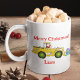 Merry Christmas Santa In Bulldozer Delivering Gift Coffee Mug
