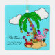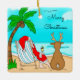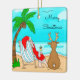 Merry Christmas Santa on Beach with Reindeer Ceramic Ornament