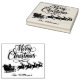 This is a great stamp you can use to make your own Christmas Card on your own card stock, Store paper bags, or other custom paper products you've made special for the Holiday Season. There is of course the words "Merry Christmas", along with a cute Santa and his sleigh being pulled by his trusty reindeer. At the bottom you can put in your own name, store, or personal greeting.