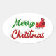Merry Christmas Santa Sleigh red green script Oval Sticker