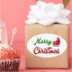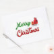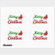 Stickers with Merry Christmas in 3D green and red text and Santa's sleigh. Stickers are available in several shapes.