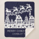 Merry Christmas Santa Winter Snowflakes Personalized Name Sherpa Blanket features Santa Claus with his reindeer flying over snow covered houses with the text "Merry Christmas" in modern calligraphy script and your personalized name below in white on a blue background. Personalize by editing the text in the text boxes provided. Perfect for Christmas gifts. Designed by ©Evco Holidays www.zazzle.com/store/evcoholidays