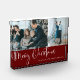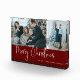 Merry Christmas Script 2 Photo Collage Holiday Red Block