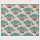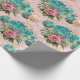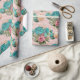 Merry Christmas Script Blue Ocean Gold Pink Roses Wrapping Paper