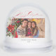 Merry Christmas Script Floral Photo Snow Globe