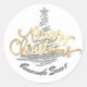 Merry Christmas Script Name Gold Grey White Classic Round Sticker