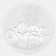 Merry Christmas Script Name Grey Snowflakes White Classic Round Sticker