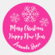 Merry Christmas Script Name Snowflake Bright Pink Classic Round Sticker