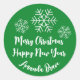 Merry Christmas Script Name Snowflake Grey Green Classic Round Sticker