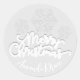 Merry Christmas Script Name Snowflakes White Grey Classic Round Sticker